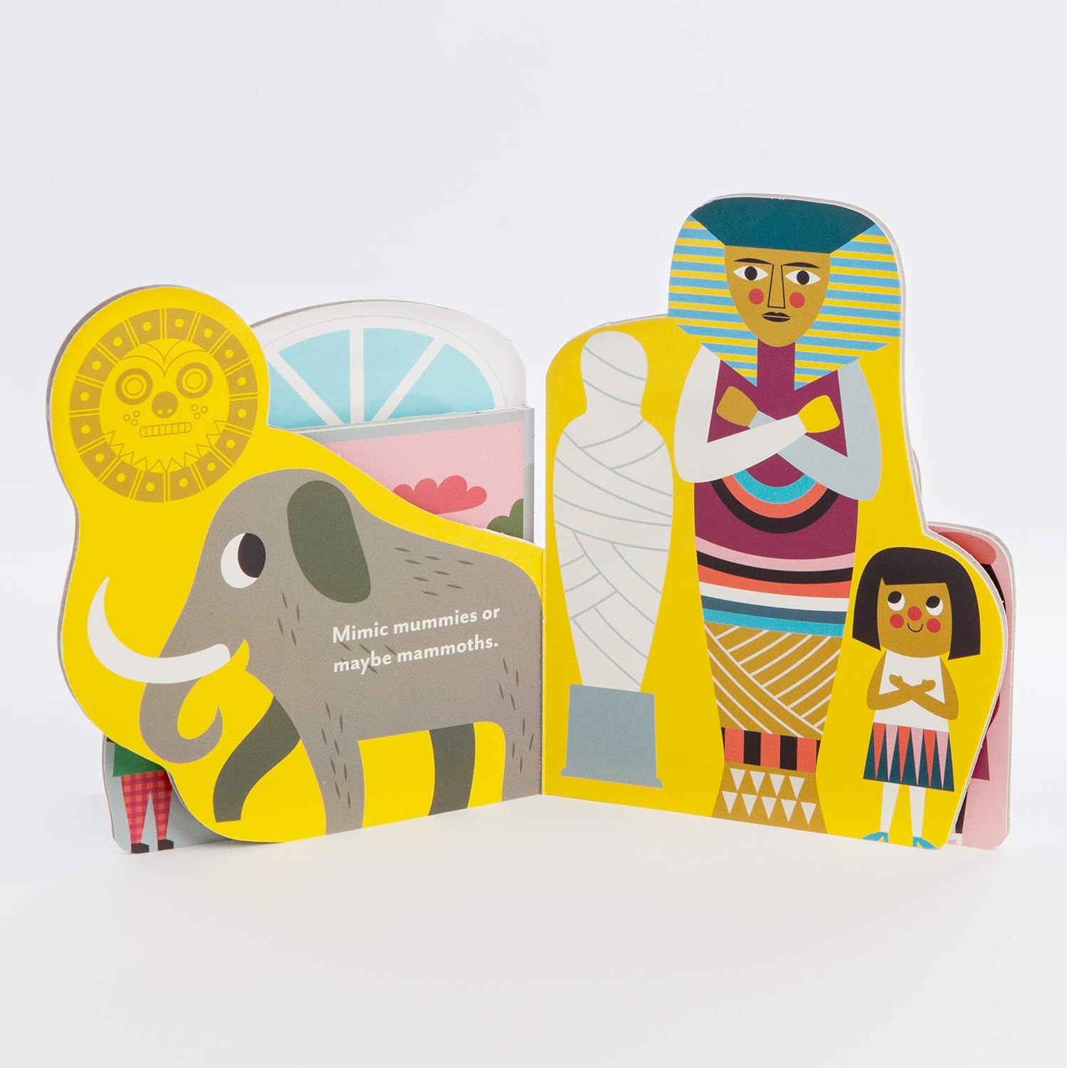 Each uniquely shaped page overlaps with the next to create a complete landscape when closed—and an immersive world to explore with each turn of the page when open. Delightfully petite and chunky, this book begs to be picked up thanks to its tactile, toylike quality. With simple concept-based text and jubilant illustrations, A Marvelous Museum provides a light introduction to landscapes kids will recognize—or soon encounter.