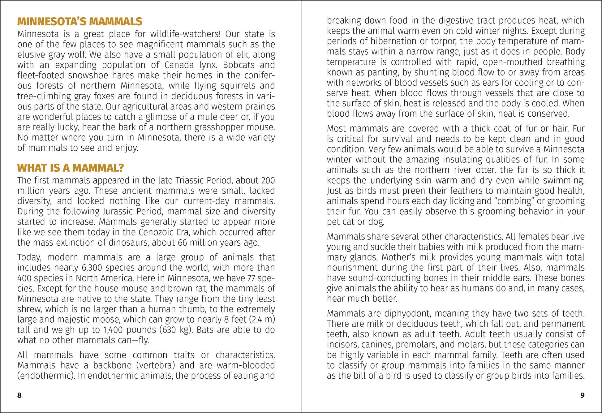 Identify Minnesota mammals with this easy-to-use field guide, organized by family and featuring full-color photographs and helpful information.