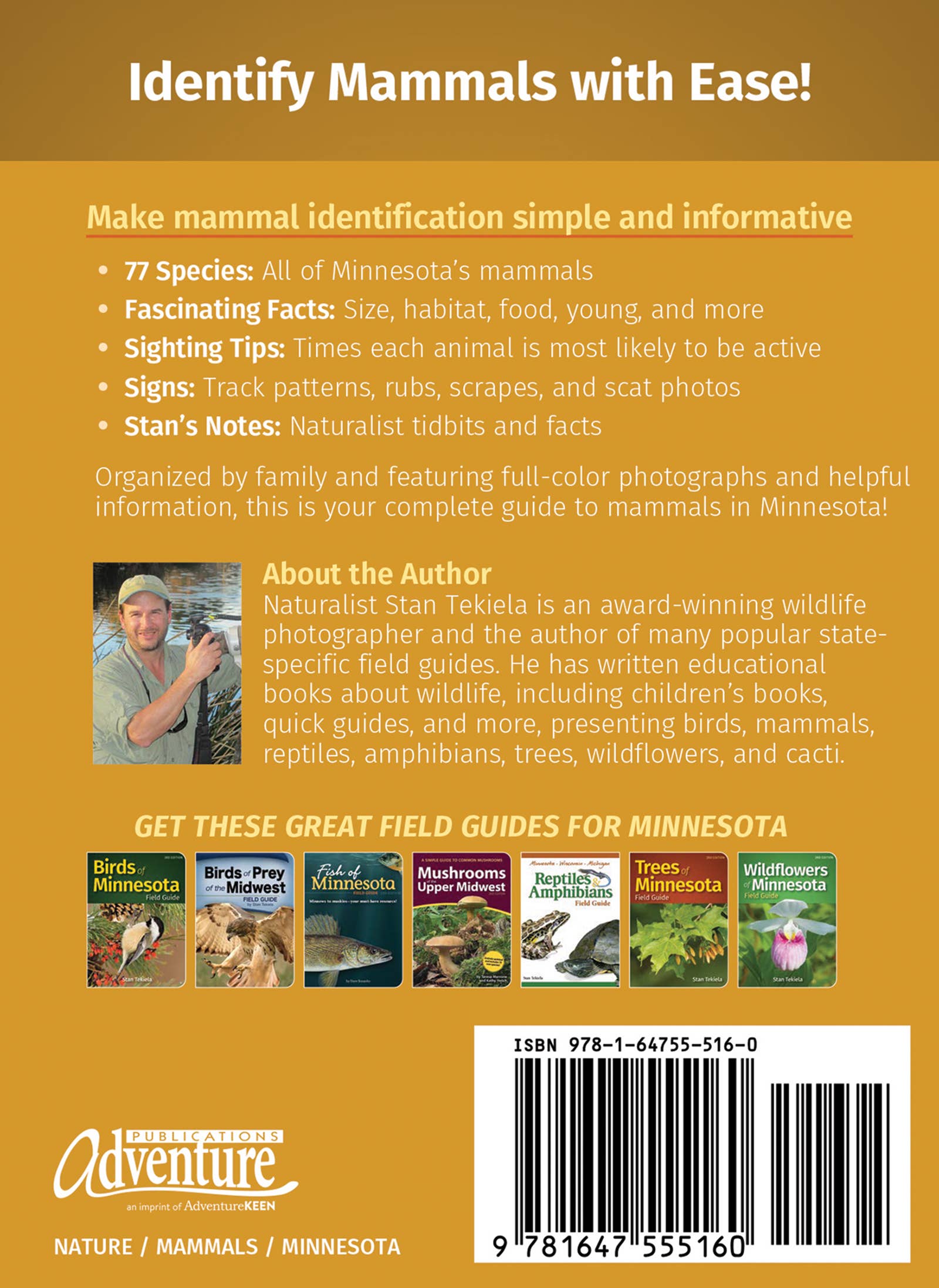 Whether you happen upon an animal track or actually see wildlife in nature, interacting with mammals is a thrill. Learn to identify mammals in Minnesota. With Stan Tekiela’s famous field guide, mammal identification is simple and informative. The Mammals of Minnesota Field Guide features all 77 species found in the state, organized by family and then by size. Fact-filled information contains the particulars that you want to know, while full-color photographs provide the visual detail needed for accurate identification.