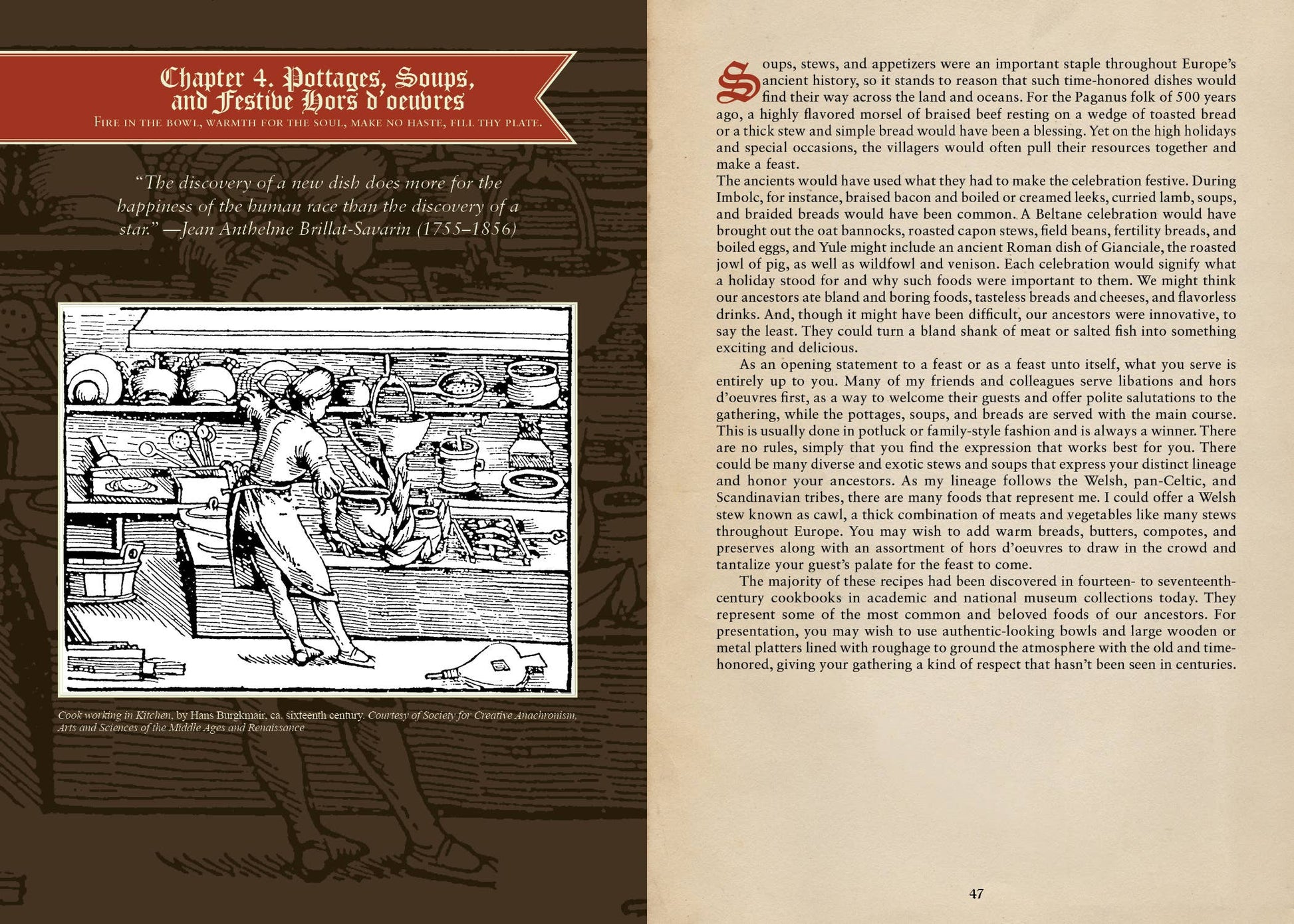 This cookbook contains 78 recipes for delicious drinks, hearty breads, soups and hors d’oeuvres, robust entrées, and rich desserts that originate from the folkloric foundations of individual cultures throughout Europe and the English Isles in the Middle Ages. These ancient and exotic foods, libations, and flavors take you through history in a festive time machine—your own kitchen! Each recipe has been researched, translated, prepared by time-honored cooking traditions, and is suitable for modern chefs everywhere. Caws Wedi Pobi “Welsh Rarebit” and sweet and spicy Chawetty Tarts, and rare dishes like Pompys “Medieval Meatballs in Sweet Sauce,” Rissoles Meat Tarts, and roasted Aberdeenshire Pheasant are sure to find great favor with your guests.